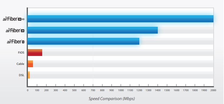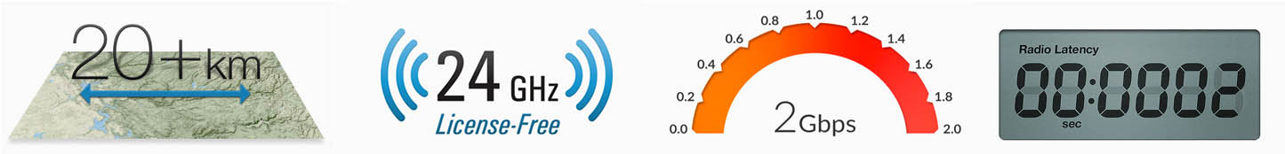 Ubiquiti, özel tasarladığı Çift radyo kartlı yenilikçi tasarımı ile AirFiber 24HD™ ürünü ile saniyede 2 Milyon paket taşıma imkanı sağlamaktadır.Aynı zamanda Dijital distorsiyon telafisi ve Karışık sinyal ayrıştırma (IFFT) işlemleri ile Lisans gerektirmeyen radyo frekanslarında meydana gelecek potansiyel kirlilik olasılıklarını azaltır ve bu frekans aralıklarında 256QAM gibi yüksek modülasyon kullanımlarına imkan sağlar.
