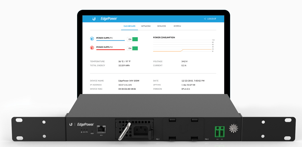 UBNT WFUBEP-54V-150W-EU | En iyi fiyat, stok bilgisi ve teknik özelliklerUBNT EdgePower EP‑54V‑150W, UBNT EdgePower Güç Kaynağı, 2 adet DC modüler bağlantı portu ile sağlanan gücü ikiye katlamak veya yedekli bir besleme altyapısı kurmak için modüler olarak tasarlanmıştır. Dahili web arayüzü ile Cihaz sıcaklığı, anlık ve toplam güç tüketimi yerel ağ veya uzaktan kolaylıkla takip edilebilmektedir.