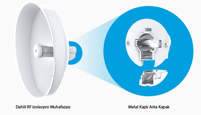 AirMAX AC teknolojisi kullanılarak oluşturulmak istenen kablosuz iletişim altyapılarında en iyi performans ve RF izolasyonu konusunda kayda değer çözümler elde etmek için tasarlanan UBNT ISOBeam AC serisi ürünler, üretilen RF sinyalini belirli bir odakta sıkıştırarak kablosuz bağlantınızın performansını en üst düzeyde tutarken, altyapı kurulumu yaptığınız bölgedeki diğer RF sinyallerinin oluşturduğu kirlilikten dahili RF Muhafazası sayesinde en az seviyede etkilenmektedir.