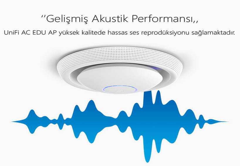 2.4GHz frekansında 450Mbps bant genişliği sağlayan ürün 5GHz bandında ise 1300 Mbps bant genişliği sağlamakla birlikte 200+ aktif kullanıcıya kadar kesintisiz hizmet sağlayabilmektedir. UBNT UniFi UAP AC EDU genel olarak UAP AC-PRO modeli ile aynı verimliliği sunarken ilave olarak Dahili Anons Hoporlörü ile sunulmaktadır.